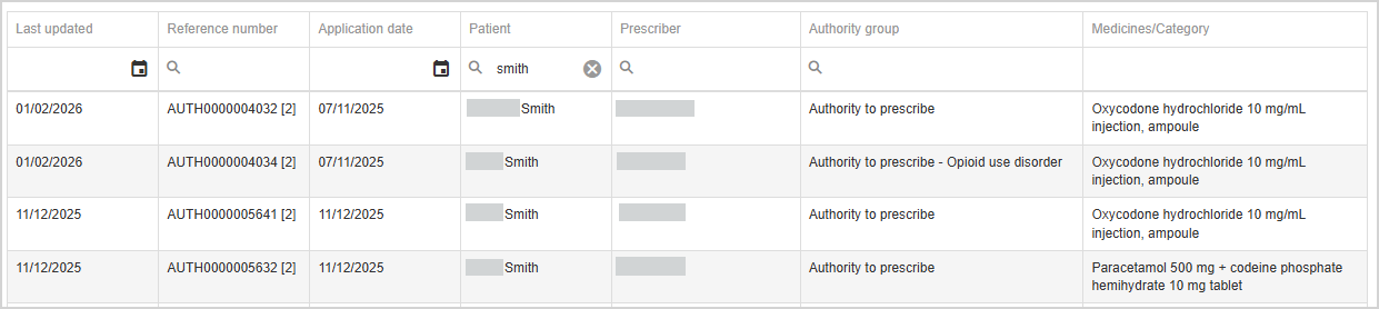 If you are a prescriber, you can view all of your monitored medicine authorities, read related correspondence, and click through to the related patient profile.